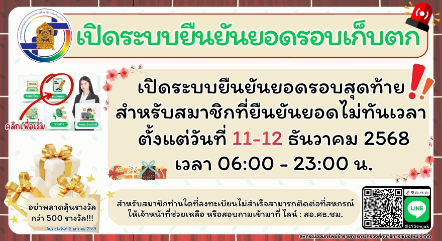 เชิญประชุมใหญ่สามัญประจำปี 2568 สมาคมฌาปนกิจสงเคราะห์ สหกรณ์ออมทรัพย์ข้าราชการกระทรวงศึกษาธิการเชียงใหม่ จำกัด (สส.ศธ.ชม.) โหลดเอกสาร 1