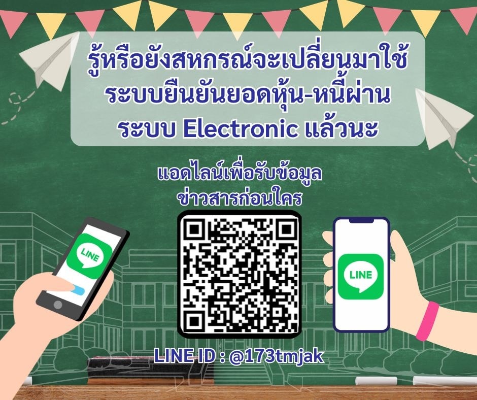 เรียน สมาชิกสหกรณ์สอ.ศธ.ชม. ทุกๆ ท่าน เพื่อเป็นการเตรียมความพร้อมในการส่งหนังสือยืนยันยอด ขอประชาสัมพันธ์ให้สมาชิกทุก ๆ คน เพิ่มเพื่อนใน Line สอ.ศธ.ชม. ตาม QR Code และศึกษาคลิป VDO การลงทะเบียนสมาชิกมาให้ท่านได้ศึกษาก่อน ที่จะให้มีการลงทะเบียนจริง ในวันจันทร์ที่ 3 พฤศจิกายน 2568 เวลา 9.00 น.