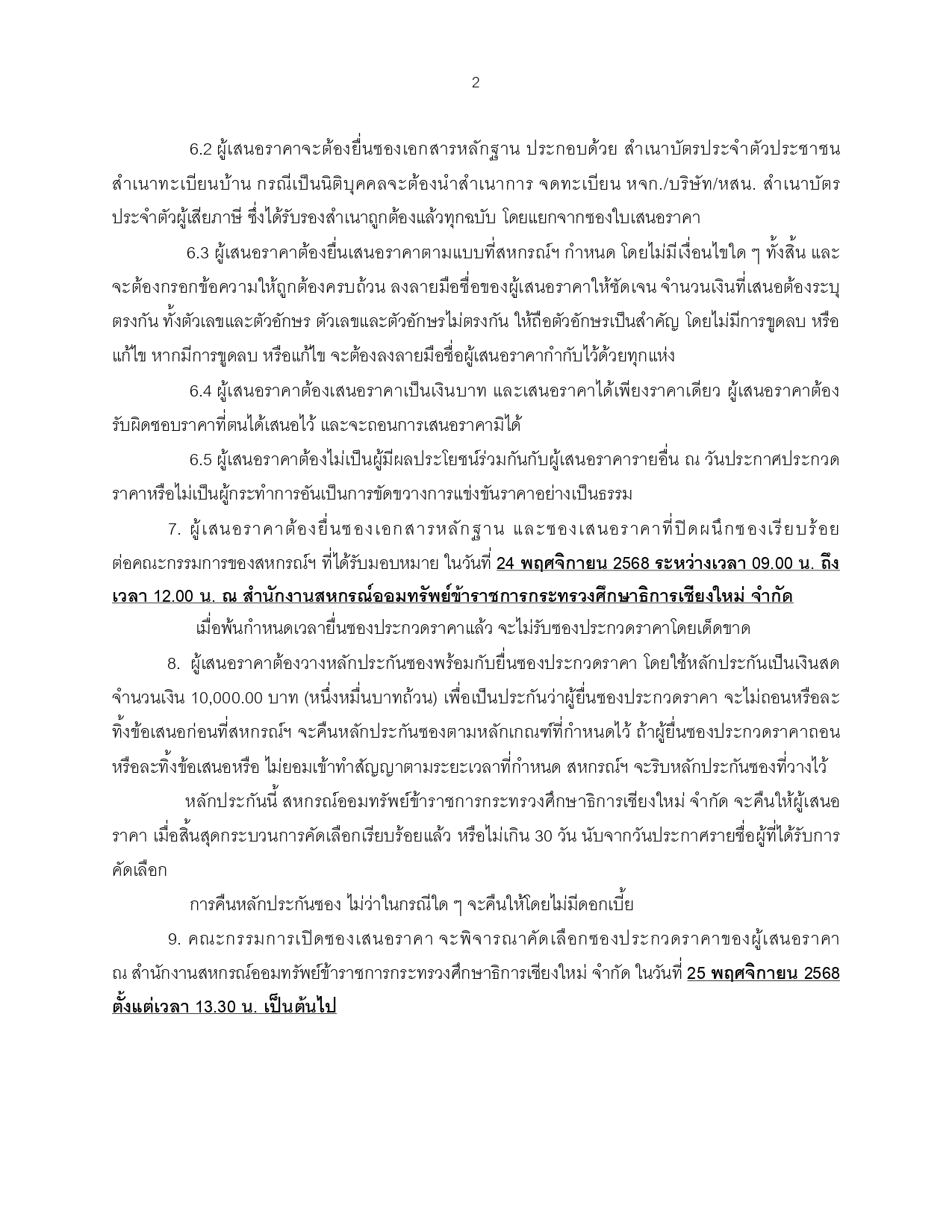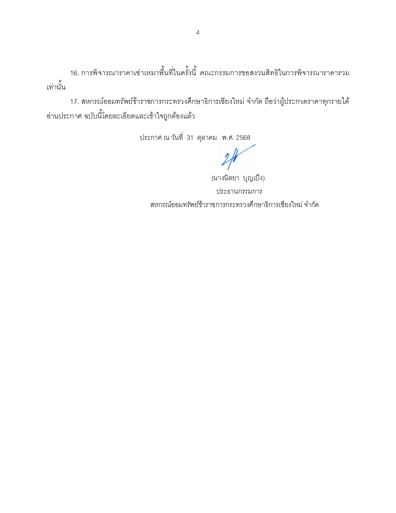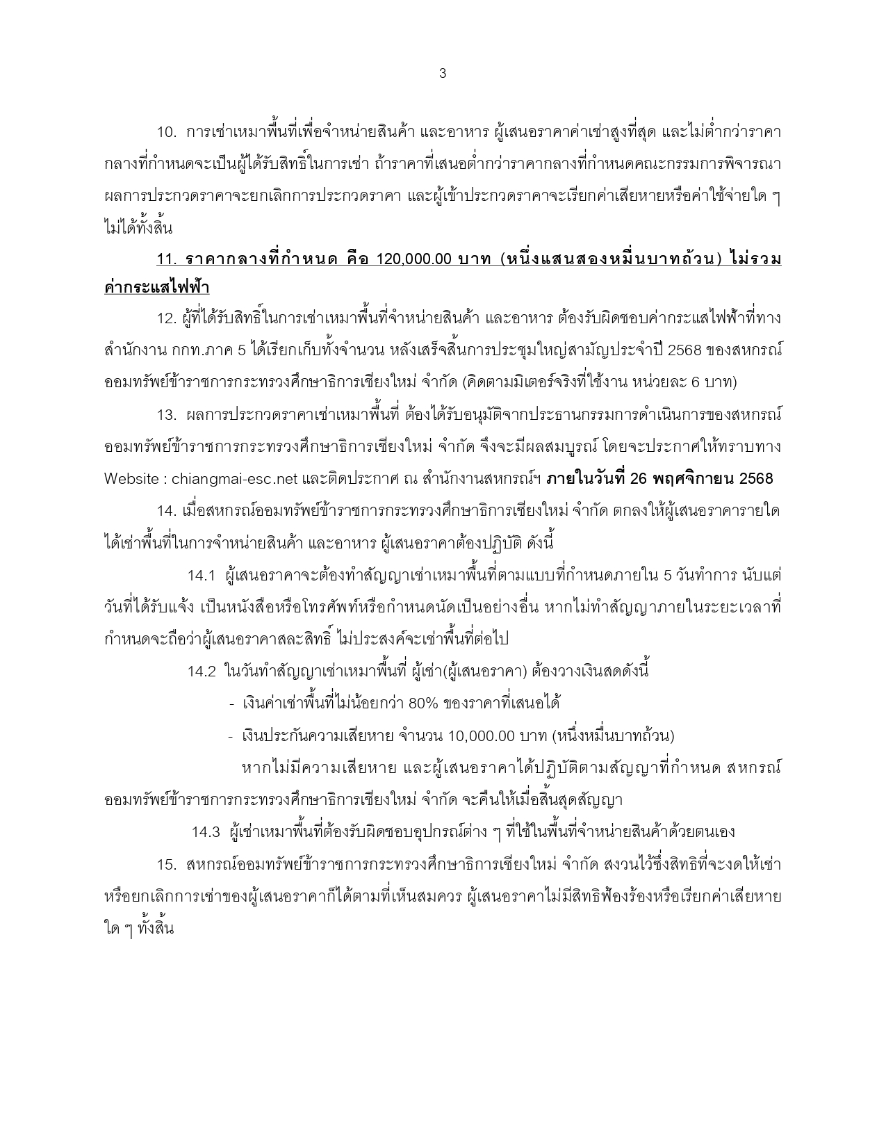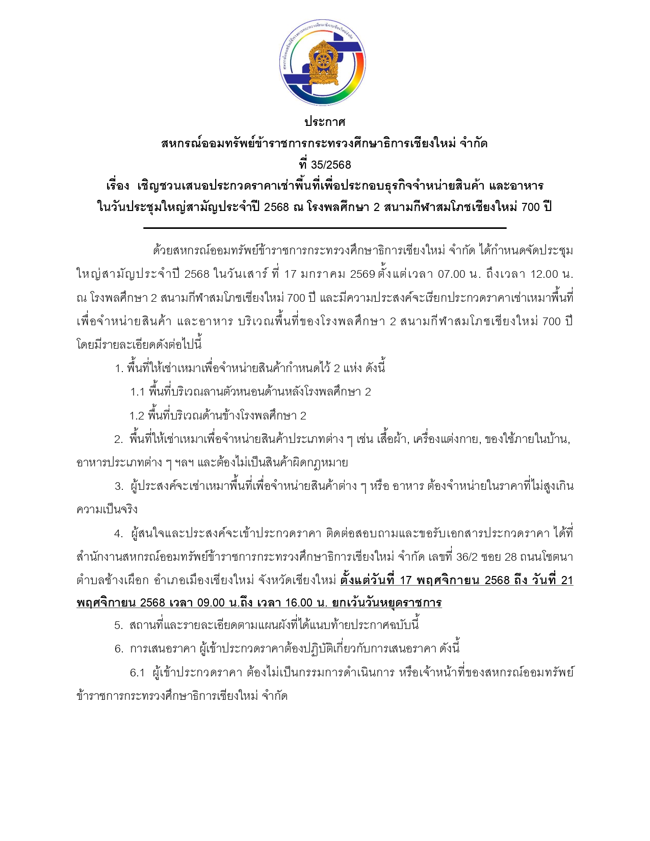 เชิญชวนเสนอประกวดราคาเช่าพื้นที่เพื่อประกอบธุรกิจจำหน่ายสินค้า และอาหารในวันประชุมใหญ่สามัญประจำปี 2568