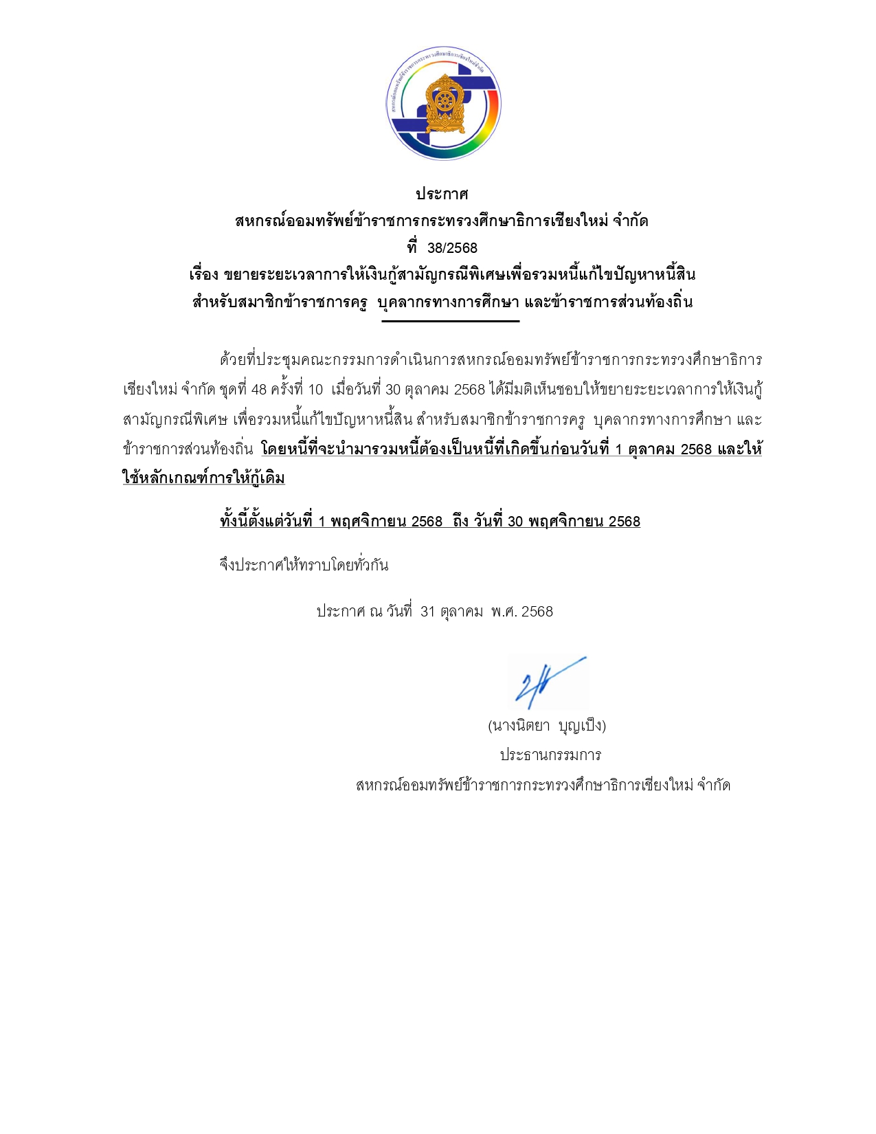 ประกาศ ขยายระยะเวลาให้กู้รวมหนี้