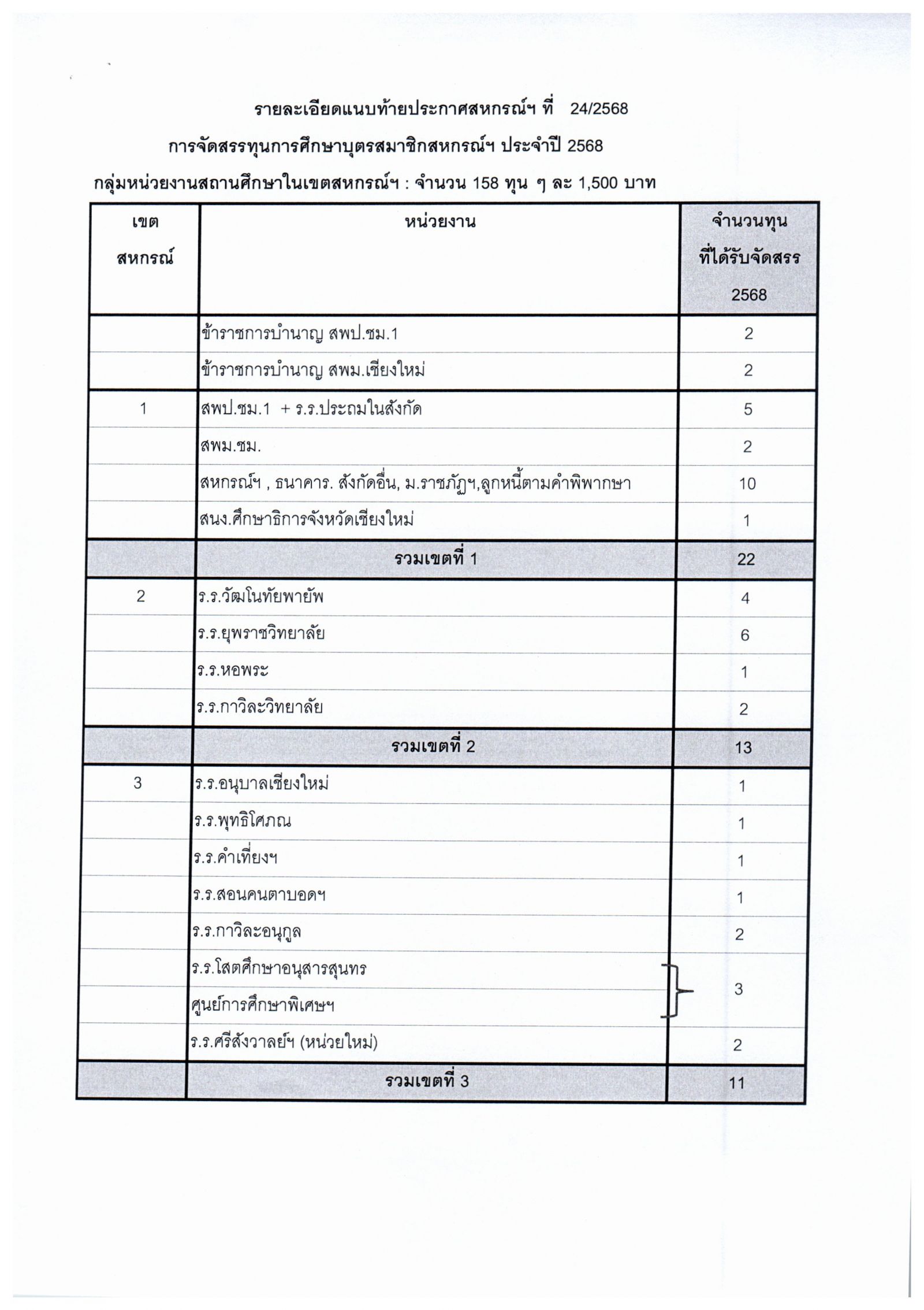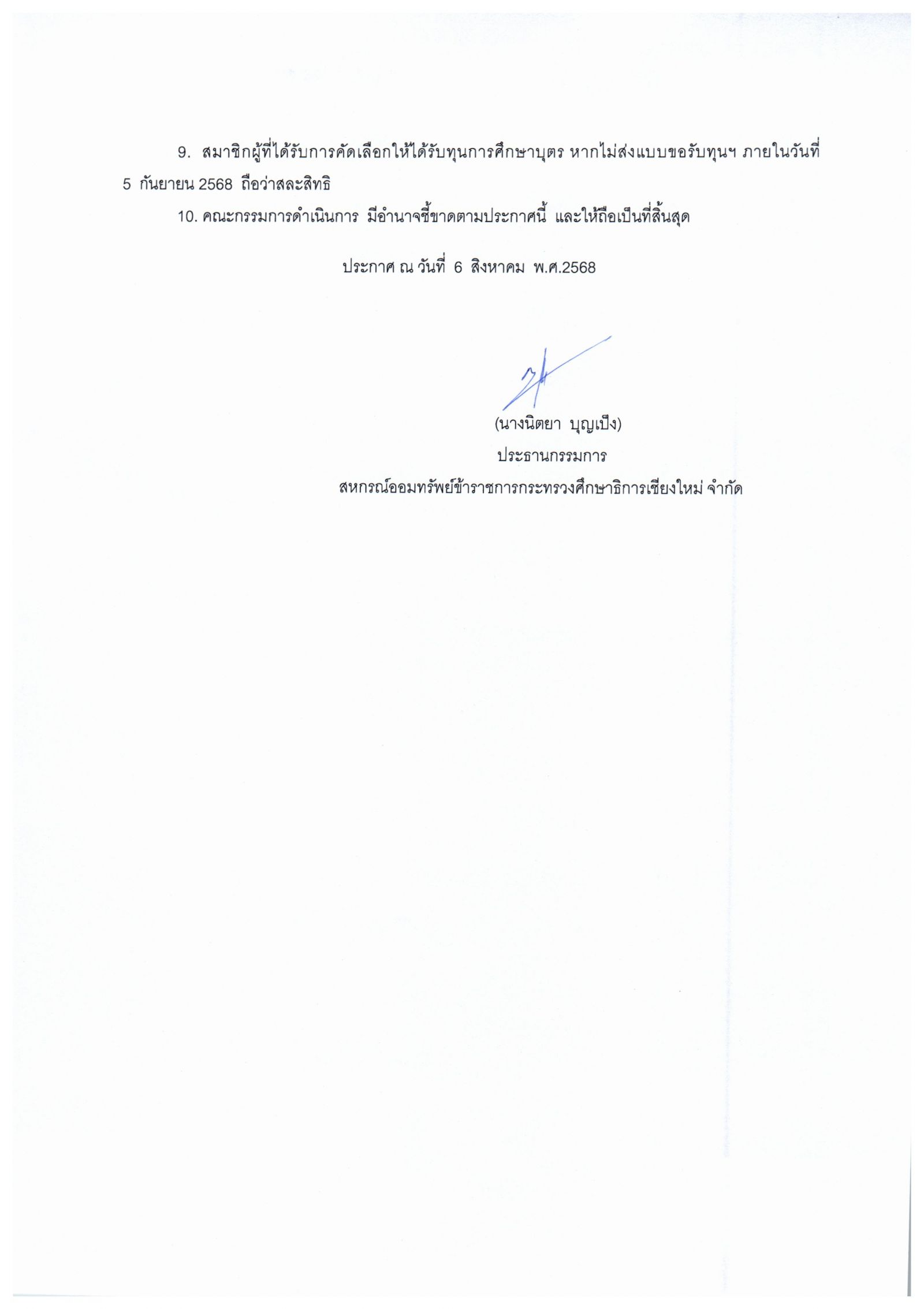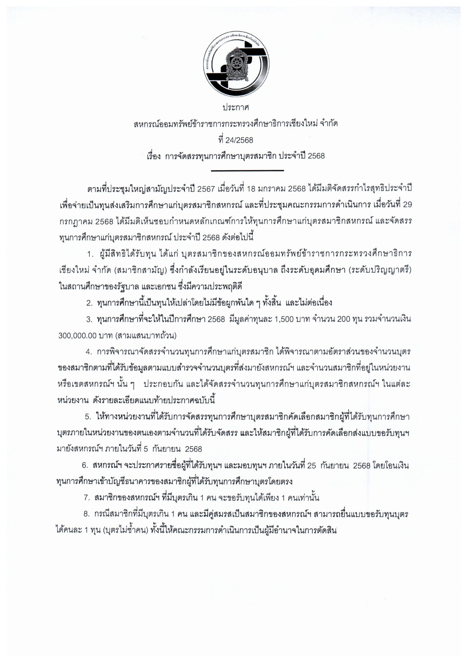 ประกาศ เรื่อง การจัดสรรทุนการศึกษาบุตรสมาชิก ประจำปี 2568