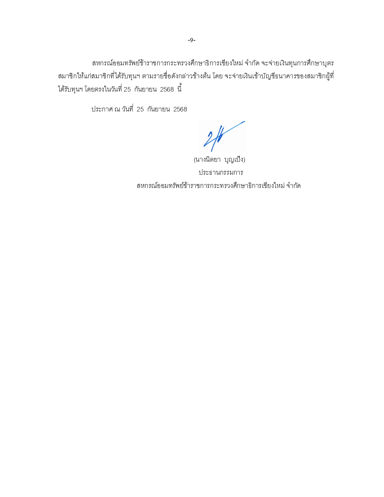 ประกาศ รายชื่อผู้รับทุนการศึกษาบุตรสมาชิกสหกรณ์ ประจำปี พ.ศ.2568