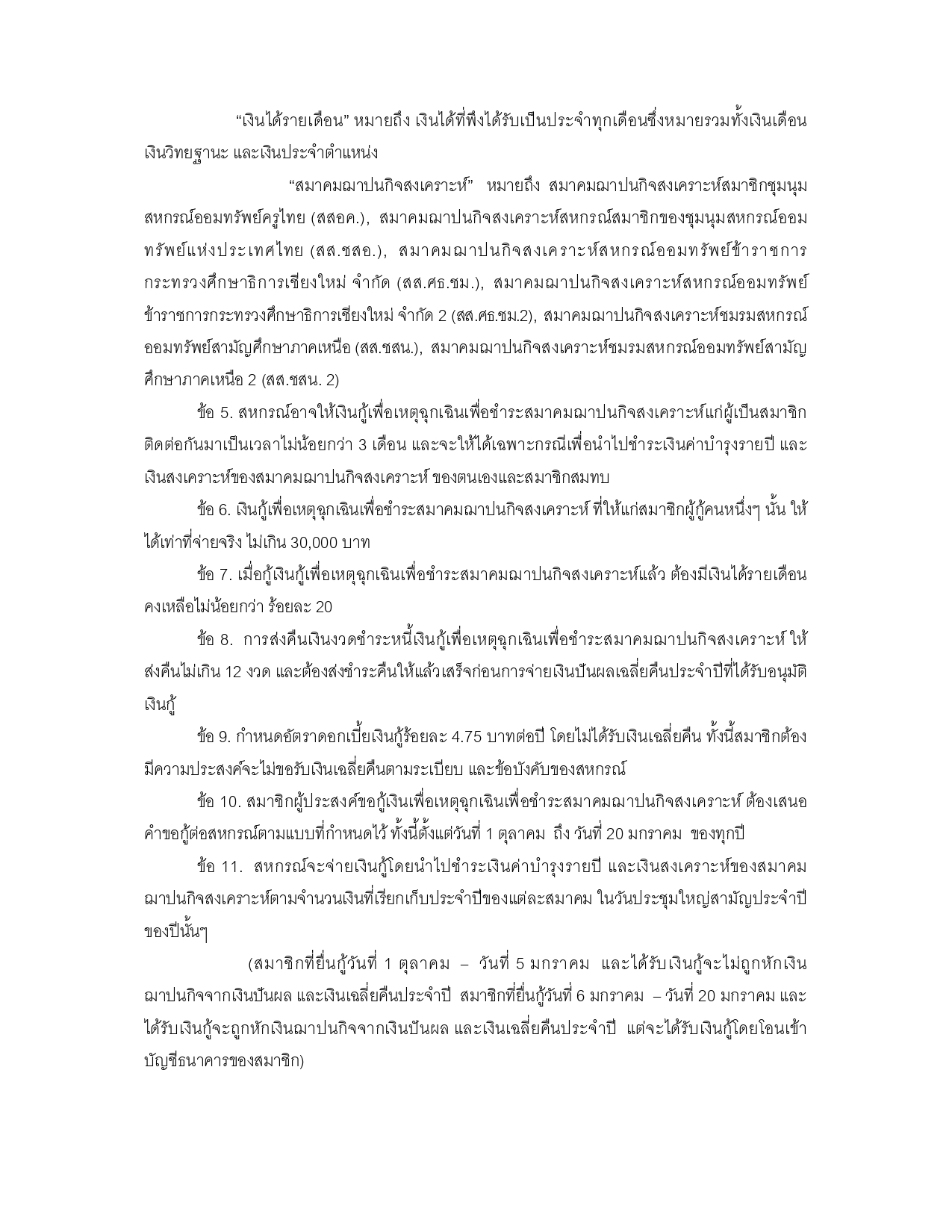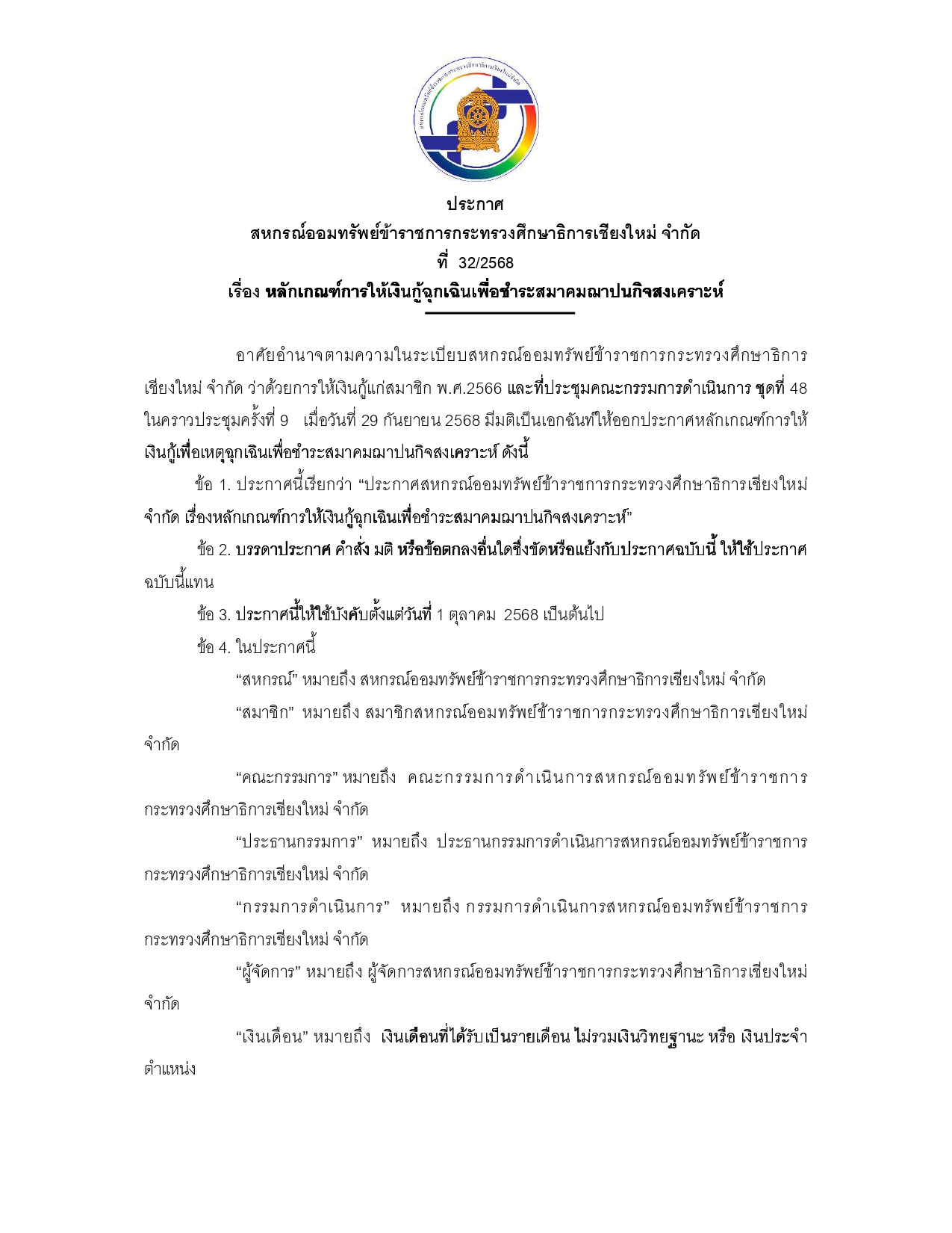 ประกาศ เกณฑ์การให้เงินกู้ฉุกเฉินเพื่อชำระสมาคมฌาปนกิจสงเคราะห์