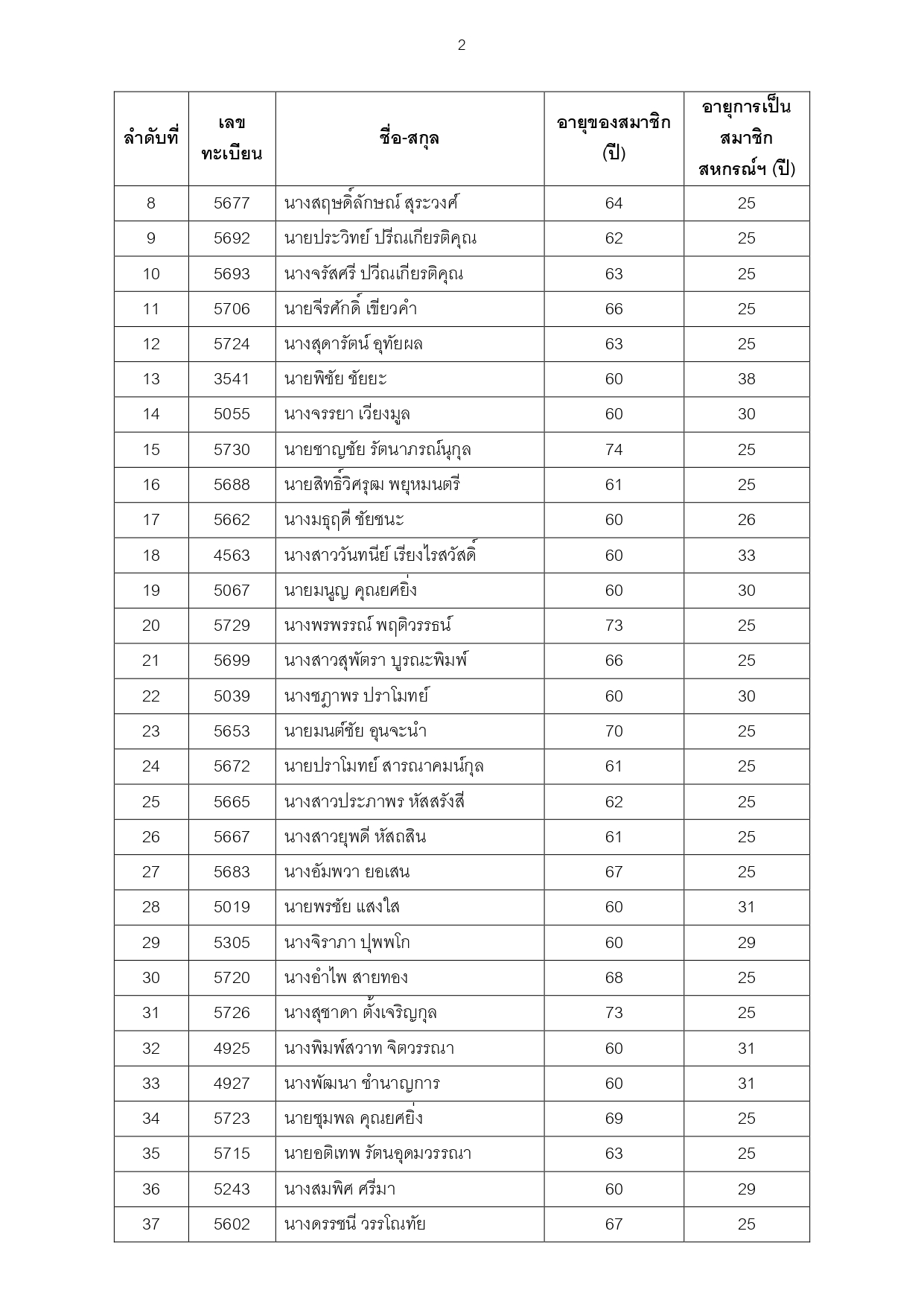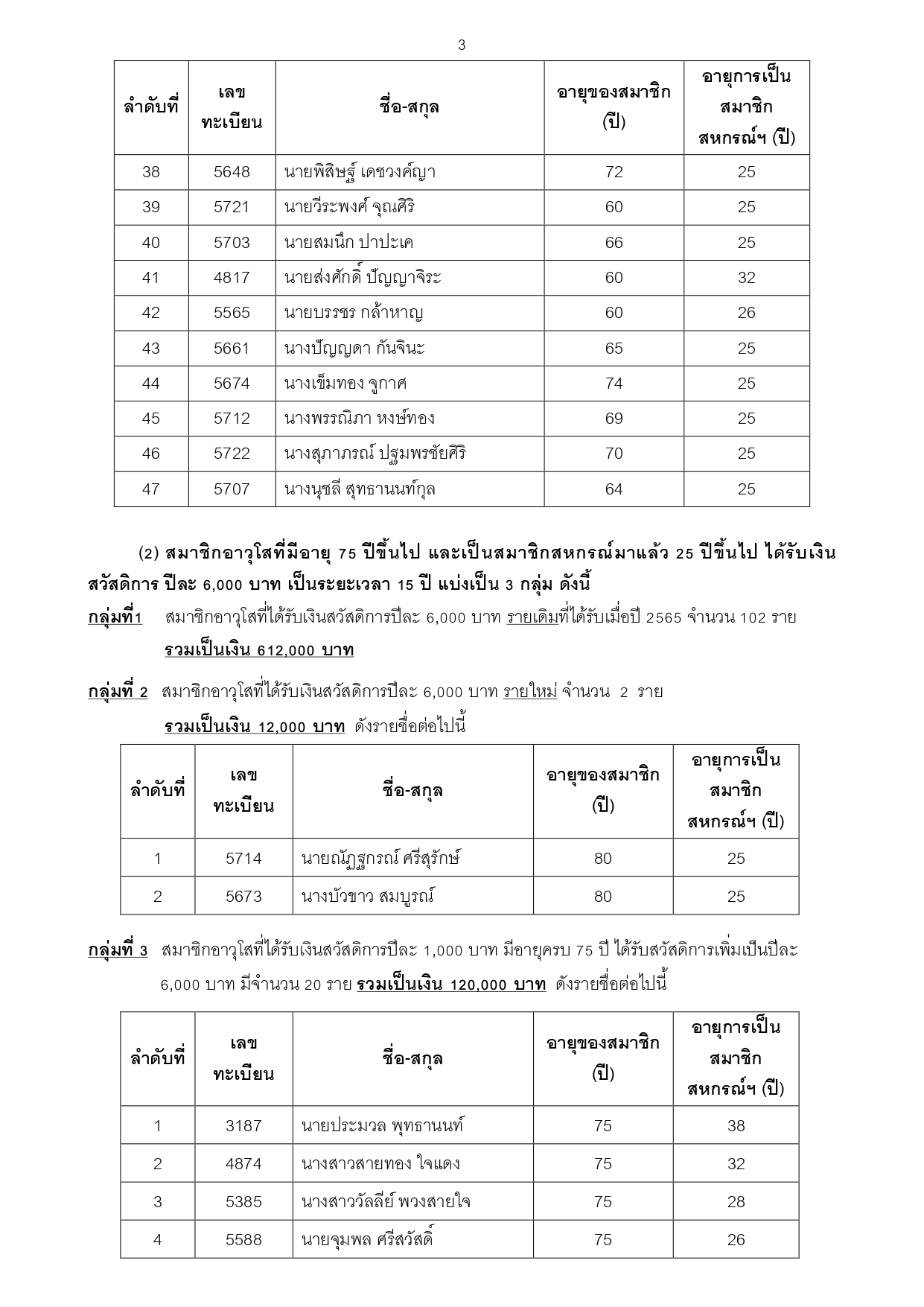 รายชื่อผู้ที่ได้รับเงินกองทุนสวัสดิการเพื่อเกื้อกูลสมาชิกอาวุโส ประจำปี 2568